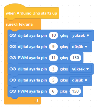 İki DC Motor Çalıştırma – Mblock ile Arduino